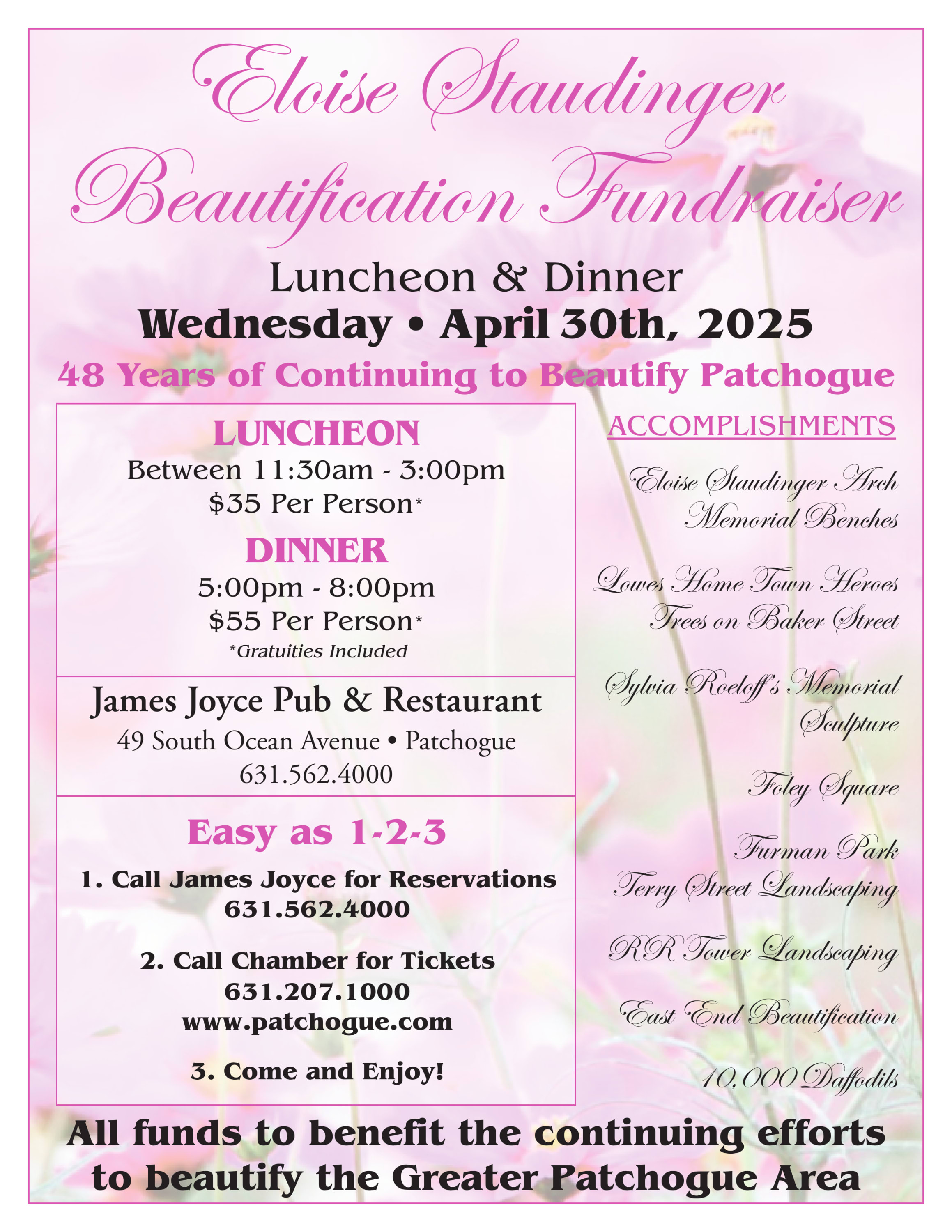 Contact James Joyce FIRST for Reservations!